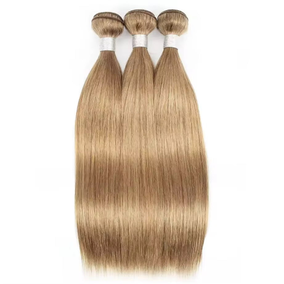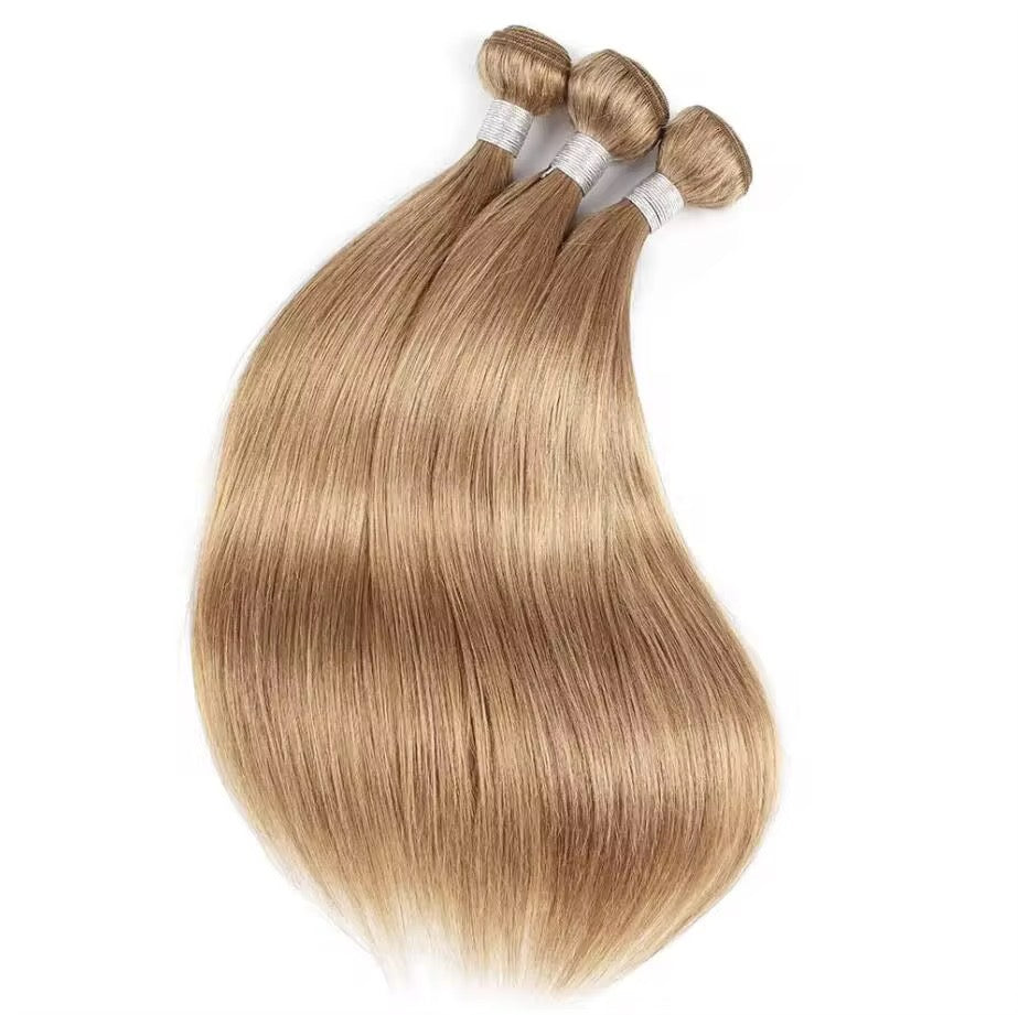 The straight bundle deal contains 3 bundles + closure of Midohair basic human hair in colour #27